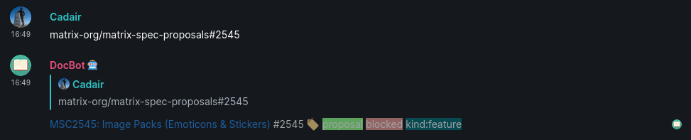One of the things I used the venerable goneb for was converting mentions of GitHub issues into links. Given Hookshot can't do this (yet) I thought I would write a quick little opsdroid skill for it. You can find it here: https://github.com/Cadair/skill-github-linker